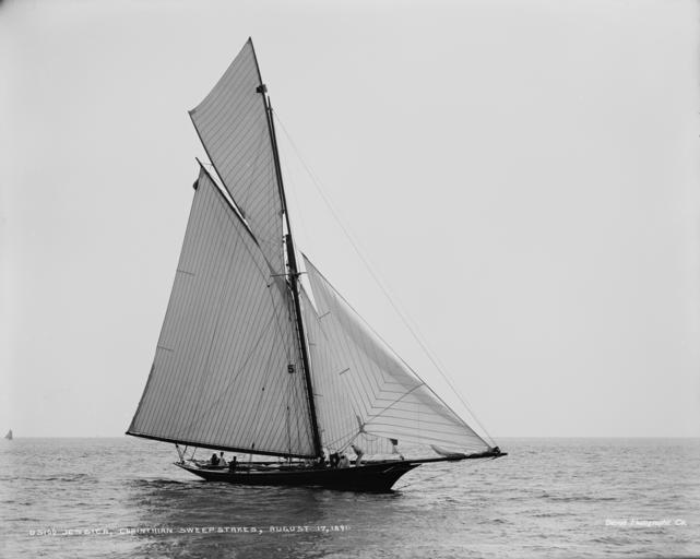 | Keywords: Cutter Jessica-1.jpg William Fife and brought to the Eastern Seaboard in 1890 She is pictured racing in the new 1891 Forty-Six foot class at the Corynthian sweepstakes August 17th 1891 LOC-image det 4a04565 1891-08-17 PD-Detroit Black and white photographs Jessica ship 1890 Boats under sail |