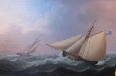 | Keywords: 'Cutters in Pursuit in a Stiff Breeze' by Thomas Buttersworth.JPG  Cutters in Pursuit in a Stiff Breeze own Creator Thomas Buttersworth oil canvas cm object history exhibition history credit line accession number Cc-zero Thomas Buttersworth Cutters sailing 19th-century sailing ships in paintings |