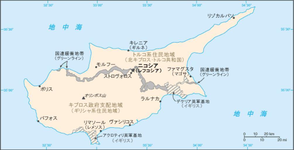 | Keywords: Cy-map-ja.png キプロス 図 - CIA Factbookより日 語化 掲載 名 アクロティリ英軍基 ヴァシリコス オリン ス山 北キプロス・トルコ共和国 キプロス政 支配 域 ギリシャ系住民 域 ギルネ キレニア グリーンライン 国 緩 帯 ストロヴォロス デケリア英軍基 トルコ系住民 域 ニコシア パフォス ファマグスタ リス マゴサ モルフー ラルナカ リゾカルパソ リマソール レフコシア レメソス Other versions ja 画像 Cy-map jpg こちらに別バージョンの 図があります PD-USGov Original upload log page ja wikipedia Cy-map png 2004-02-28 20 56 SEKIUCHI 636×324×8 16020 bytes <nowiki> - CIA Factbook </nowiki> Maps of Cyprus Files transferred from Japanese Wikipedia | ||||
