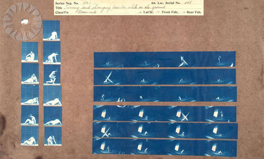 Keywords: photography physics inventors muybridge smithsonian probably public domain probablypublicdomain SI Neg. 2004-47521. Date: na....Title: "Turning and changing position while on ground.".Series Neg. No. 1501.An. Loc. Serial No. 266.Classification: "Woman nude.".Muybridge's cyanotypes are working proofs, the contact prints he made from more than 20,000 negatives he took at the University of Pennsylvania between 1884 and 1886 while photographing human and animal subjects in motion from lateral (parallel), front and rear positions. Since the original negatives no longer exist, the cyanotypes provide us with the opportunity to see the pictures Muybridge achieved before he edited and cropped them for publication..From the Photographic History Collection, National Museum of American History...Credit: Eadweard Muybridge (Smithsonian Institution) SI Neg. 2004-47521. Date: na....Title: "Turning and changing position while on ground.".Series Neg. No. 1501.An. Loc. Serial No. 266.Classification: "Woman nude.".Muybridge's cyanotypes are working proofs, the contact prints he made from more than 20,000 negatives he took at the University of Pennsylvania between 1884 and 1886 while photographing human and animal subjects in motion from lateral (parallel), front and rear positions. Since the original negatives no longer exist, the cyanotypes provide us with the opportunity to see the pictures Muybridge achieved before he edited and cropped them for publication..From the Photographic History Collection, National Museum of American History...Credit: Eadweard Muybridge (Smithsonian Institution) |