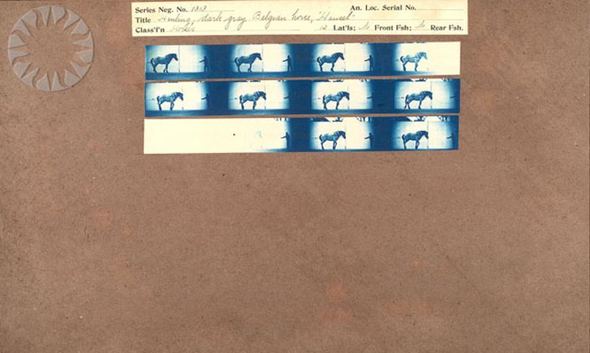 Keywords: photography physics inventors muybridge smithsonian probably public domain probablypublicdomain SI Neg. 2004-44878. Date: na....Title: "Hauling, dark gray Belgian Horse 'Hansel'.".Series Neg. No. 1313.An. Loc. Serial No. None.Classification: "Horses.".Muybridge's cyanotypes are working proofs, the contact prints he made from more than 20,000 negatives he took at the University of Pennsylvania between 1884 and 1886 while photographing human and animal subjects in motion from lateral (parallel), front and rear positions. Since the original negatives no longer exist, the cyanotypes provide us with the opportunity to see the pictures Muybridge achieved before he edited and cropped them for publication..From the Photographic History Collection, National Museum of American History...Credit: Eadweard Muybridge (Smithsonian Institution) SI Neg. 2004-44878. Date: na....Title: "Hauling, dark gray Belgian Horse 'Hansel'.".Series Neg. No. 1313.An. Loc. Serial No. None.Classification: "Horses.".Muybridge's cyanotypes are working proofs, the contact prints he made from more than 20,000 negatives he took at the University of Pennsylvania between 1884 and 1886 while photographing human and animal subjects in motion from lateral (parallel), front and rear positions. Since the original negatives no longer exist, the cyanotypes provide us with the opportunity to see the pictures Muybridge achieved before he edited and cropped them for publication..From the Photographic History Collection, National Museum of American History...Credit: Eadweard Muybridge (Smithsonian Institution) |