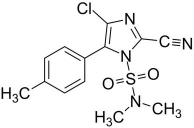 | Keywords: Cyazofamid 200.svg validSVG Structure of 4-chloro-2-cyano-N N-dimethyl-5- p-tolyl -1H-imidazole-1-sulfonamide Own 2014-03-11 Emeldir <span class signature-talk >talk</span> PD-chem Imidazoles Sulfamides Nitriles Chloroaromatics Toluenes Fungicides |