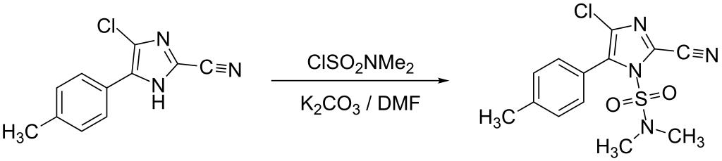 Keywords: Cyazofamid synthesis (3).svg validSVG Synthesis of 4-chloro-2-cyano-N N-dimethyl-5- p-tolyl -1H-imidazole-1-sulfonamide Own 2014-03-11 Emeldir <span class signature-talk >talk</span> PD-chem Chemical reactions