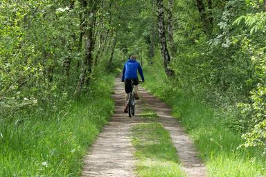 Keywords: cycling cyclists forest away nature trees forest path trail nature trail hiking spring walk promenade green idyll recovery holiday relaxation