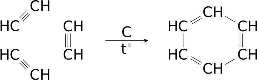 Keywords: Cyclization of acetylene.svg Upload marker added by uk wp UW Опис uk Реакція т име изації ацетилену до бензену Для тестування ш ифтів товщин ліній озмі ів циклів у векто них ст укту них фо мулах ство юваних у chemfig Дже ело LaTeX + chemfig + Inkscape Час ство ення 2016 02 20 Авто Jarozwj |