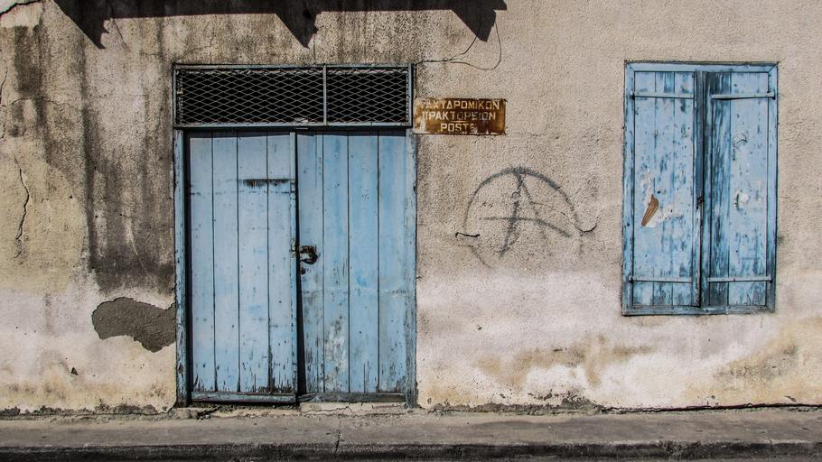 Keywords: cyprus germasogeia old post office entrance architecture traditional aged weathered abadoned