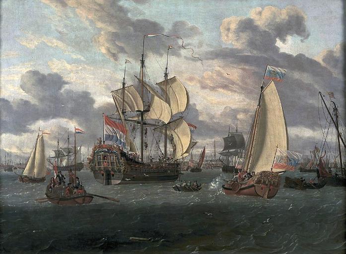 Keywords: Czar Peter en route to the newly built fregate 'Peter and Paul'.jpg Artwork creator Abraham Storck title Czar Peter the Great on board of his yacht en route to the Pieter en Paul Czaar Peter de Grote aan boord van zijn jacht op weg naar de Pieter en Paul ca 1698 1708 Oil on canvas cm 72 96 institution Amsterdam Museum marine painting PIET EN PAVL object history ProvenanceEvent 1959 purchase Amsterdam Museum Amsterdam H H Cevat art dealer Lausanne http //ahm adlibsoft com/ vcl0ek55docpbcyz134eubmr /detail aspx parentpriref ahm adlibsoft com SA 8251 Other versions PD-old-100 derivative works Strug Russische Marine 1696 jpg ImageNote 1 675 482 37 49 998 733 2 Czar Peter the Great ImageNoteEnd 1 ImageNote 2 296 325 99 92 998 733 2 flag of the VOC ImageNoteEnd 2 ImageNote 3 248 405 130 135 998 733 2 East india ship Pieter en Paul ImageNoteEnd 3 ImageNote 4 787 419 96 86 998 733 2 flag and wapen of russian Czar ImageNoteEnd 4 ImageNote 5 31 464 55 29 998 733 2 East india store chamber Amsterdam ImageNoteEnd 5 Peter I of Russia in history paintings 1697 17th-century sailing ships in paintings Dutch Golden Age paintings Abraham Storck Paintings in the Amsterdam Museum 18th-century sailing ships in paintings Oil paintings of watercraft 17th-century oil on canvas paintings in the Netherlands 18th-century oil on canvas paintings in the Netherlands