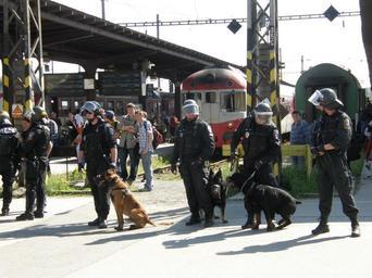 Keywords: Czech police 05.JPG Czech police Brno own 2008-04-28 Lukáš Malý uvolňuji dílo Police action in Brno hlavní nádraží Baník Ostrava - 1 FC Brno 28-th April 2008