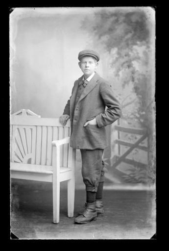 Keywords: proni cooper h.f. cooper hfcooper family family portrait familyportrait genealogy ancestry ulster strabane northern ireland northernireland county tyrone countytyrone lifford county donegal countydonegal child children infant posed formal clothing early 20th century early20thcentury suit blackandwhite people monochrome photo border surreal black and white Creator: H.F. Cooper Photographer, Strabane Date: c.1910 Original Format: Glass Plate Negative Description: Photograph of a young man (c. 14 years) standing beside a bench wearing a cap and plus-fours. PRONI Ref: D1422/B76545/C/9 Copying and copyright: Please see www.proni.gov.uk/index/research_and_records_held/copying_... For Copy Orders, contact: Email: proni@dcalni.gov.uk For fees and charges see: www.proni.gov.uk/index/about_proni/are_there_any_fees_and... Creator: H.F. Cooper Photographer, Strabane Date: c.1910 Original Format: Glass Plate Negative Description: Photograph of a young man (c. 14 years) standing beside a bench wearing a cap and plus-fours. PRONI Ref: D1422/B76545/C/9 Copying and copyright: Please see www.proni.gov.uk/index/research_and_records_held/copying_... For Copy Orders, contact: Email: proni@dcalni.gov.uk For fees and charges see: www.proni.gov.uk/index/about_proni/are_there_any_fees_and... |
