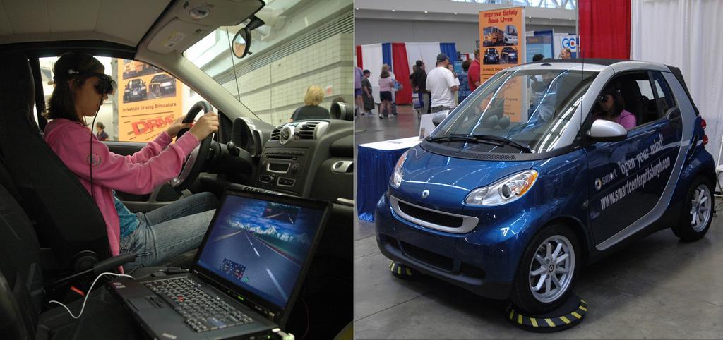 | Keywords: D2 Driving Simulator ABC Show.jpg en Portable In-vehicle Driving Simulator developed by Drive Square Inc a low-cost full-vehicle http //www drivesquare com/ driving simulator for training utilizing an actual vehicle and an augmented reality head-mounted display HMD As exhibited using a Smart fortwo car at the ABC's Healthy For Life Expo Pittsburgh PA 2008 Own Ksizov 2008-08-23 This photo is released into public domain Permission to copy is hereby granted Vehicle simulation Smart Fortwo Coupé 2nd gen Head-mounted display |