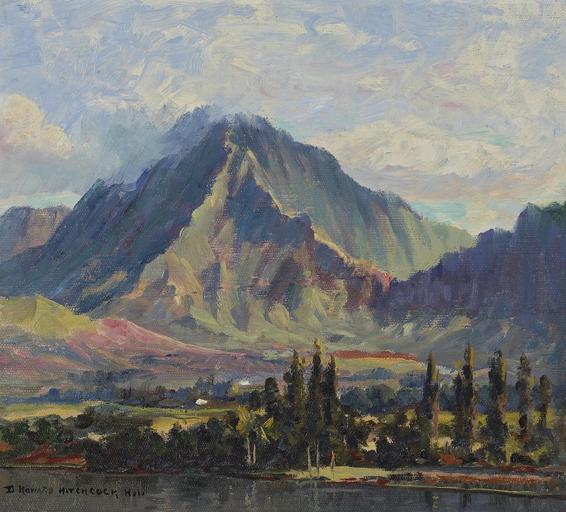 | Keywords: D. Howard Hitchcock - Pali Gap from Kaneolu Bay, Oahu, Hawaii, 1915.jpg D Howard Hitchcock David Howard Hitchcock 1861-1943 1915 oil canvas cardboard in 12 13 5 accession number object history credit line exhibition history D Howard Hitchcock H I ~ lower left signature http //www bonhams com/auctions/16152/lot/2278/ Bonhams Los Angeles auction 16152 lot 2278 24 Nov 2008 PD-old-auto-1923 1943 Hawaii in paintings by D Howard Hitchcock Mountains of Hawaii Oil paintings of nature 1915 oil on canvas paintings 1915 in Hawaii Images from Bonhams |