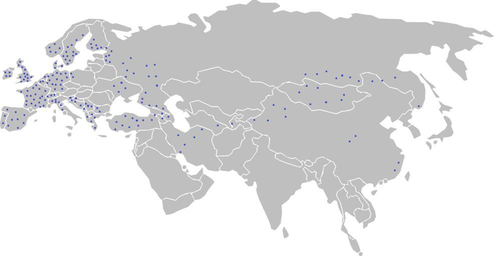| Keywords: D sylvestris distribution.png en This image of eurasia contains dots that represent distribution of the wasp Dolichovespula sylvestris 2014-11-12 Distribution was added to eurasia map on wikicommons based on information from the article Taxonomy and World Distribution of the Euro-Asian species of Dolichovespula Hym Vespinae by Michael E Archer from the Entomologists's Monthly Magazine July 1999 ashleyearley Harbin other versions Custom license marker 2014 11 13 Harbin Uploaded with UploadWizard Dolichovespula sylvestris |