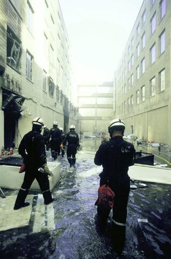 | Keywords: DA-SD-03-17541.JPEG Military District of Washington MDW Engineer Company Technical Rescue engineers make their way through the wreckage between the rings inside the Pentagon The morning of September 11th in an attempt to frighten the American people five members of Al-Qaida a terrorist group of fundamentalist Muslims hijacked American Airlines Flight 77 then deliberately impacted the Pentagon killing all 64 passengers onboard and 125 people on the ground The impact destroyed or damaged four of the five rings in that section of the building Firefighters fought the fire through the night The Pentagon was the third target by four hijacked aircraft the twin towers of the World Trade Center WTC were the other targets and one unknown when the passengers brought the aircraft down in a Pennsylvania field http //www dodmedia osd mil/Assets/Still/2003/Army/DA-SD-03-17541 JPEG 2001-09-16 SSG JOHN VALCEANU USA PD-USGov PD-USGov The Pentagon on 16 September 2001 |