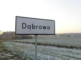 Keywords: Dąbrowa.JPG pl Tablica wjazdowa od strony Kamienia Krajeńskiego own Batistuta86 2008-12-27 City limit signs in Poland Dąbrowa Sępólno County