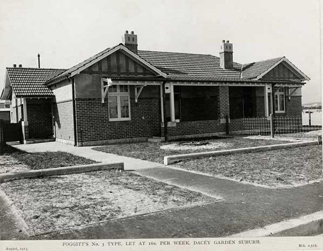 Keywords: archives state records nsw staterecordsnsw newsouthwales blackandwhite daceyville suburb garden suburb gardensuburb sydney houses federation style federationstyle public housing publichousing outdoor building architecture black and white Foggit's No.3 Type let at 16s [shillings] per week, Dacey Garden suburb Dated: 1913 Digital ID: 5225_a018_a018000029 Rights: www.records.nsw.gov.au/about-us/rights-and-permissions We'd love to hear from you if you use our photos. From a series of photographs of 'Dacey Garden Suburb' (Daceyville) - a development by the Housing Board of NSW as Sydney's "first planned modern garden suburb". Daceyville was developed between 1913 and 1918 and is located in south-eastern Sydney within the municipalities of Mascot and Botany. The images in the series show scenes of the area before development, road building, the types of houses built, shops, as well as the Public School. The suburb was named after the state parliamentarian John Rowland Dacey who played a vital role in the approval of this urban development. Many other photos in our collection are available to view and browse on our website using Photo Investigator. Foggit's No.3 Type let at 16s [shillings] per week, Dacey Garden suburb Dated: 1913 Digital ID: 5225_a018_a018000029 Rights: www.records.nsw.gov.au/about-us/rights-and-permissions We'd love to hear from you if you use our photos. From a series of photographs of 'Dacey Garden Suburb' (Daceyville) - a development by the Housing Board of NSW as Sydney's "first planned modern garden suburb". Daceyville was developed between 1913 and 1918 and is located in south-eastern Sydney within the municipalities of Mascot and Botany. The images in the series show scenes of the area before development, road building, the types of houses built, shops, as well as the Public School. The suburb was named after the state parliamentarian John Rowland Dacey who played a vital role in the approval of this urban development. Many other photos in our collection are available to view and browse on our website using Photo Investigator. |