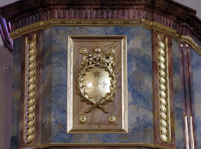 Keywords: Dachstein StMartin 062.JPG Alsace Bas-Rhin Dachstein Eglise Saint-Martin Reliefs décoratifs sur la chaire own 2012 Ralph Hammann Pulpit of Église Saint-Martin de Dachstein Bas-Rhin Photographs of Dachstein by Ralph Hammann Wooden reliefs in Bas-Rhin Neoclassical reliefs Taken with Canon PowerShot SX20 IS 19th-century wooden reliefs in Alsace Cc-zero