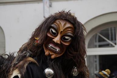 Keywords: daemon spirit strassenfasnet fools jump swabian alemannic fasnet move haes mask carnival masquerade costume panel tradition customs haestraeger wooden mask carved custom fig fools guild guild group winter drive end of winter sprout