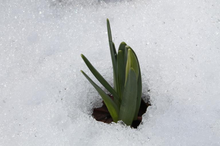 Keywords: daffodil narcissus pseudonarcissus snow green spring blossom bloom plant white yellow flowers nature