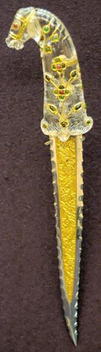 Keywords: Dagger horse head Louvre OA7892.jpg Dagger with horse head pommel Mughal art from India Poignard à tête de cheval art moghol d'Inde Pumnal cu mâner în formă de cap de cal Artă mogulă din India century 18 steel gilded ; rock crystal gold inlay rubies emeralds Institution Louvre Department of Islamic Art Richelieu lower ground floor room 11 object history own photo date 2006 Marie-Lan Nguyen artwork license PD-old-100 photo license other versions Islamic metalwork in the Louvre Khanjars Horse heads in art Mughal art in the Louvre Museum |