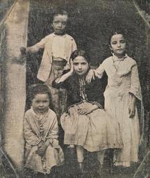 | Keywords: Daguerreotype - Google Art Project.jpg commons date commons medium commons dimensions commons institution commons location commons references commons object_history commons exhibition_history commons credit_line commons inscriptions commons notes commons accession_number commons source commons permission commons other_versions commons zoom core title Daguerreotype core creator Unknown core date dateCreated 1850 core type Photo core relation http //www digitaltmuseum se/things/dagerrotyp-daguerreotyp-i-ram-gruppbild-av/S-NM/NMA 0052744 core rights Reprographer Mats Landin c-09caf48a customtext more_information The daguerreotype was the first commercially successful photographic method and was launched by Louis Daguerre and Nicéphore Niepce in 1839 It was popular until the 1860s when it was superseded by procedures that were less complex and costly The technique was based on a direct positive exposure on a silver-coated copper plate The image could not be duplicated and was only visible if viewed from an angle Exposure times were long although they grew shorter as camera technology improved The plate was very sensitive to touch and it was therefore necessary to preserve daguerreotypes under glass in either a case or frame The mercury fumes to which the photographer was exposed during developing could at worst cause brain and nerve damage Despite the obvious drawbacks daguerreotypes if the conditions were right could reproduce details with a clarity and richness that subsequent techniques could not achieve Even today after more than 170 years there are enthusiasts producing daguerreotypes using only slightly modified methods This daguerreotype was acquired in 1938 Its provenance is unknown but it is likely to be of foreign origin c-09caf48a customtext subject Portrait Group portrait Portrait of children google display_date 1850 google is_artproject TRUE google is_gigapixel FALSE google is_secured TRUE google partner/id 0000000009caf48a google partner/name Nordiska Museet google picasa_token TK1O7EbUJIqxA5rHq1KI-OkUTkE special url_id JgFxt7Y9l-8k9g special partner/name_no_lang Nordiska Museet PD-old-70-1923 Google Art Project works by unknown artist Google Art Project works in Nordiska Museet Groups of children |