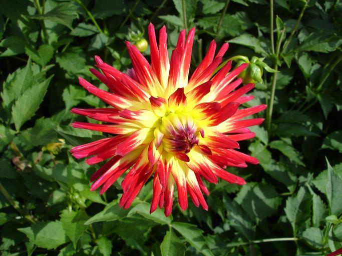 Keywords: dahlia flower blossom bloom red dahlias plant flower garden