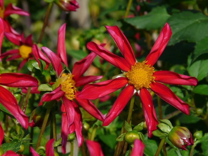 Keywords: dahlia garden red flower blossom bloom star dahlia hortensis composites asteraceae various dahlia orchid floral bud