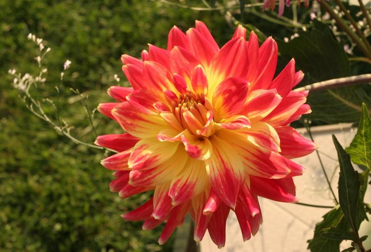 Keywords: dahlia gloire de paris hybrid red and yellow