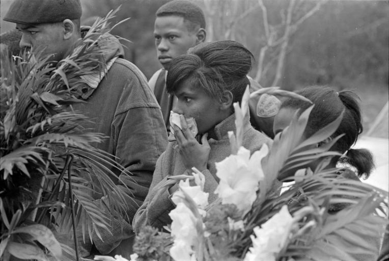 | Keywords: ms-dept-archives-history msdeptarchiveshistory moncrief mdah:sysid=94904 blackandwhite monochrome outdoor black and white Collection: Moncrief Photograph Collection Call number: PI/1994.0005 System ID: 94904. Link to the catalog Vernon Dahmer funeral, Shady Grove Baptist Church, Kelly Settlement (Hattiesburg, Miss.), afternoon of January 15, 1966. Mourners and floral tributes at graveside during funeral. Scanned as TIFF in 2005-06-21 by MDAH. Credit: Courtesy of the Mississippi Department of Archives and History. Collection: Moncrief Photograph Collection Call number: PI/1994.0005 System ID: 94904. Link to the catalog Vernon Dahmer funeral, Shady Grove Baptist Church, Kelly Settlement (Hattiesburg, Miss.), afternoon of January 15, 1966. Mourners and floral tributes at graveside during funeral. Scanned as TIFF in 2005-06-21 by MDAH. Credit: Courtesy of the Mississippi Department of Archives and History. |