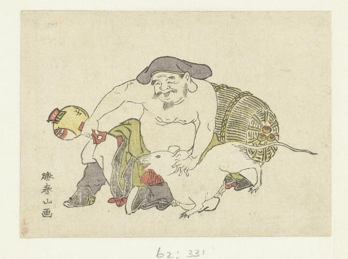 | Keywords: Daikoku en zijn rat-Rijksmuseum RP-P-1962-331.jpeg accession number RP-P-1962-331 Creator Katsukawa Shunzan credit line en God of happiness Daikoku sitting against a rice bag with a hammer in his hand and his pet rat This print was a calendar for the year 1792 the short months 1 2 4 7 9 and 11 are visible on the hammer nl De geluksgod Daikoku zittend tegen een rijstbaal met een hamer in de hand en zijn rat Deze kalenderprent voor het jaar 1792 de korte maanden 1 2 4 7 9 en 11 zijn zichtbaar op de hamer Label Line mentioned on object Katsukawa Shunzan 1792 kleurenhoutsnede; lijnblok in zwart met kleurblokken Collection prenten; Japan collectie blad Height mm 90 blad Width mm 123 exhibition history Institution Rijksmuseum woodblock color print object history Acquisition 1962 object type prent PD-US PD-old-100 Data and photography rights All data and all images made available through the API are either in the public domain or are subject to a CC0 license https //www rijksmuseum nl/en/api/terms-and-conditions-of-use cc-zero place of creation Japan Forrer 35; Jap Cat II 59 http //www rijksmuseum nl/collectie/RP-P-1962-331 http //hdl handle net/10934/RM0001 COLLECT 45516 handle nl Daikoku en zijn rat en Daikoku and his rat Uploaded with GWToolset Rijksmuseum RP-P-1962-331 http //www rijksmuseum nl/media/assets/RP-P-1962-331 Images uploaded by Fæ Images from the Rijksmuseum Katsukawa Shunzan Daikokuten Rats in art 1792 prints Japanese 18th-century prints in the Rijksmuseum Amsterdam |
