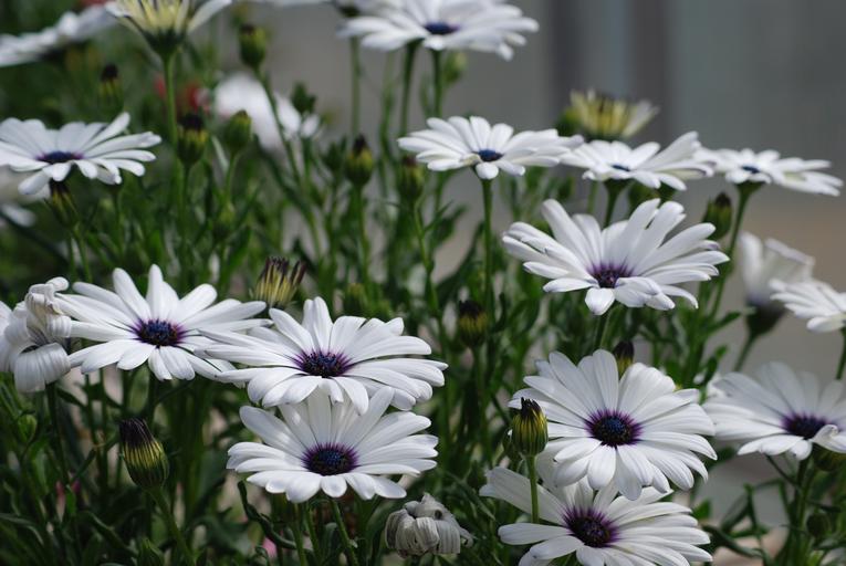 Keywords: daisies white blossom flowers garden