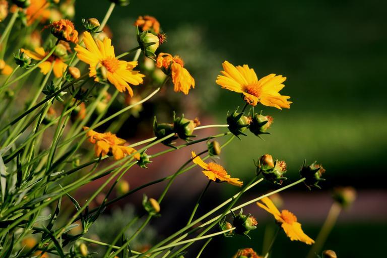 Keywords: daisies yellow stems long leaning garden