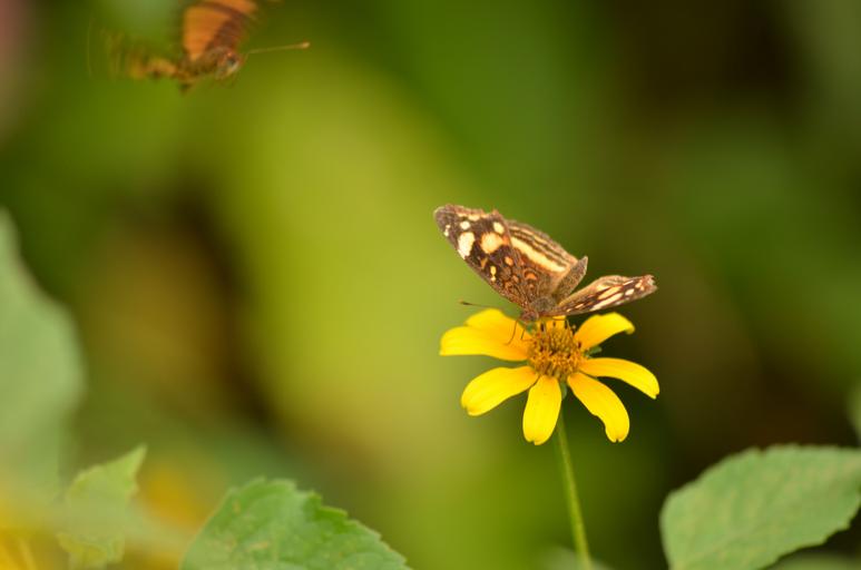 Keywords: daisy butterfly lepidopteran spring garden nature yellow flower plants yellow colors vegetable