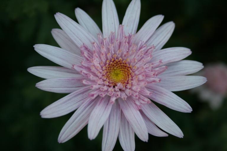Keywords: daisy flower bloom crown double light pink yellow centre petals delicate springtime detail close-up