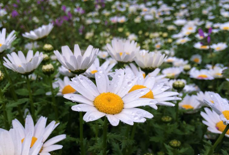 Keywords: daisy rain drop of water water margaret flowers white chrysanthemum green many cute fragrance aroma yokosuka kanagawa japan otsu park antomasako flower bed flowering female yellow pure white meek pretty small by 湿っと discreet partly cloudy