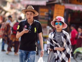 MAKE A MEME View Large Image dali couple people street young pair hats summer