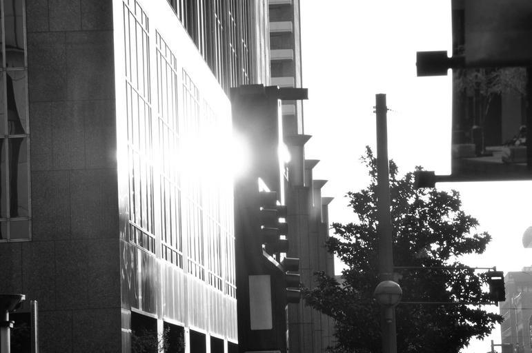 Keywords: dallas downtown sunlight buildings architecture black and white