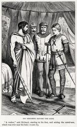 Keywords: Dalziel Brothers - Sir Walter Scott - The Talisman - Sir Kenneth before the King.png wikitable <big>This is the lossless version of the restored file File Dalziel Brothers - Sir Walter Scott - The Talisman - Sir Kenneth before the King jpg The software cannot currently thumbnail large PNGs but they can be downloaded and are necessary to allow the file to be re-edited without progressive degradation </big> Sir Kenneth before the King by the Dalziel Brothers after Sir Walter Scott's The Talisman From left to right King Richard the Lionheart Henry Neville Thomas de Vaux and Sir Kenneth Neville and de Vaux are arguably the other way around but as de Vaux steps forwards between Richard and Kenneth a moment after the quote this order seems more likely The Talisman and The Chronicles of the Canongate by Sir Walter Scott Bart Edinburgh Adam Charles Black 1887 Volume XX of Waverley Novels Centenary Edition 1887 One or more of George Dalziel 1815-1902 Edward Dalziel 1817-1905 John Dalziel c 1820-c 1855 Thomas Dalziel 1823-1906 PD-Old Image Dalziel Brothers - Sir Walter Scott - The Talisman - Sir Kenneth before the King jpg - JPEG of restored version Image Dalziel Brothers - Sir Walter Scott - The Talisman - Sir Kenneth before the King png - Archival PNG of restored version Image Dalziel Brothers - Sir Walter Scott - The Talisman - Sir Kenneth before the King unrestored jpg - JPEG of original scan Image Dalziel Brothers - Sir Walter Scott - The Talisman - Sir Kenneth before the King unrestored png - PNG of original scan Some staining in upper left and to a much lesser extent elsewhere removed or reduced by selective levels adjustments Cropped rotated levels adjusted The quote was slighty skewed compared to the title and the rest of the image - enough to damage the composition when used in an electronic medium with hard borders - so I selectively gave a very small rotation to that and used the clone brush to fill in the gaps produced Dalziel Brothers The Talisman The Crusades Richard I of England Henry Neville Thomas de Vaux |