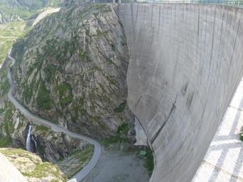 Keywords: dam energy generation reservoir mountains enormous huge stone bridge lago del chiotas