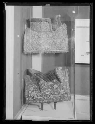 | Keywords: Damsadel, 1650, broderad i Frankrike, monterad i Sverige - Livrustkammaren - 11289.tif LSH artwork sv Damsadel av blå sammet med yttäckande broderi av rankor och voluter med guld- och silvertråd Rektangulära kappor fodrade med mörkbrunt läder och kantade med frans av guld och silvertråd Sitsen till största delen omsluten av en 145 mm hög bom på utsidan med stoppad vulstformig kant Sitsen bommens insida och kanten stickade med tvinnad guld- och silvertråd Hög sadelknapp utan broderi överst framåt utdragen rundad räfflad av förgyllt silver Sitsen utanför bommen kantad med tännlickor av förgyllt silver Bom klädd med näver Lös rundad kudde att lägga framför sadelknappen som stöd för högerbenetTre stroppar för sadelgjord av brunt läder fodrade med vitt läder En skinnklädd sölja för stigläder Två söljor för förbygel en sölja för svansrem alla av stål och med löphylsa original caption 1650 silver - velvet Färg blå material sammet - leather - gold thread size mm 630 size mm 340 sits size mm 570 size mm 600 LRK Kristina av Sverige Christina drottning av Sverige 1966 Königin Christina 1997-1998 Osnabrück Äktenskap kärlek och barnafödande - 1600-talets kvinnoroll 2000 Hästen 2003-2004 Utst Schwedenzeit in Pommern staden Wolgasts 750-årsjubileum 2007 Trofast - hov och tass i kunglig tjänst 2010-2011 Livrustkammaren Trogna vänner - Kungliga hästar och hundar 2011-2012 Museiverket/Finlands nationalmuseum Utbyteslån av föremål från Drottning Kristina i samband med inlån av begravningsregalier till Livrustkammarens utställning Dödens teater 2015-2016 Strängnäs domkyrka place of origin SE Monterad FR Broderad original filename LN_E06057 45535 inventory number LRK 9000 11289 CC0 Damsadel 1650 broderad i Frankrike monterad i Sverige - Livrustkammaren - 11289-negative tif <gallery caption Different images of same object > File Damsadel 1650 broderad i Frankrike monterad i Sverige - Livrustkammaren - 19103 tif File Damsadel 1650 broderad i Frankrike monterad i Sverige - Livrustkammaren - 27665 tif File Damsadel korgstigbygel - Livrustkammaren - 76412 tif File Damsadel Frankrike - Livrustkammaren - 76985 tif </gallery> <gallery caption Related objects > File Stigbygel Vasavapnet - Livrustkammaren - 68591 tif LRK 6333 File Stigbygel - Livrustkammaren - 51380 tif LRK 6333 </gallery> Saddles Media contributed by LSH dim-with multiple size templates Media contributed by LSH 2016-12 |