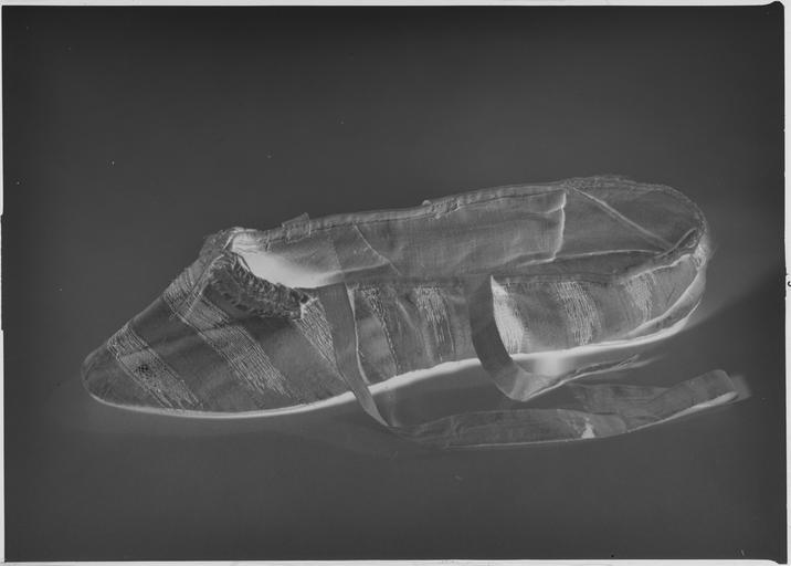 Keywords: Damsko - Livrustkammaren - 1971-negative.tif LSH artwork sv Av siden randigt i ljust beiget siden och silver - inramat av guldtrådar Skon bars av drottning Hedvig Elisabeth Charlotta 1817 Skon har mycket smal och rak läst och har spetsigt rundad tå Ovanläder och bakkappa förenas med rätt långt fram liggande sidsömmar I ringningen framtill finns en dragsko med linnesnöre att knyta Ringningen framtill är dekorerad med 2 tätt rynkade benvita sidenband Innersula och bakkappa av vitt skinnn f ö foder av beiget linne Vristband av 10 mm breda ljust beiga sidenband fastsatta som öglor vid ringningen På innersulan spår av inskription med bläck Denna sko bars första gången Hedw Elisab Charlotta 1817 På Galla Dagen då undertecknad var tjenstgörande Kammarherre Fredr Boije Sulan av läder är sliten och försedd med 3 pinnhålsstämplar 1 stämpel finns under tån en under hålfoten och en stämpel under hälen De är stjärnformiga och i diam 3 mm original caption 1817 linen Färg beige material linne - silver - silk Färg beige d1 - dräkt - yttermaterial material siden - silk Färg beige material siden - gold thread g 39 size mm 45 60 225 LRK Hedvig Elisabeth Charlotta av Sverige Skor ger mer - makt flärd magi 2007 place of origin original filename LN_B16840_019720 54170 inventory number LRK 17575 1971 CC0 Damsko - Livrustkammaren - 1971 tif <gallery caption Different images of same object > File Damsko - Livrustkammaren - 25027 tif File Damsko - Livrustkammaren - 34729 tif </gallery> |
