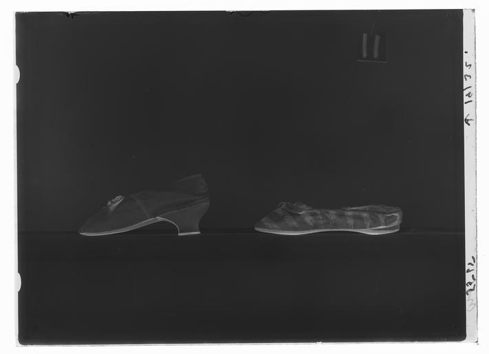 Keywords: Damsko - Livrustkammaren - 34729-negative.tif Av siden randigt i ljust beiget siden och silver - inramat av guldtrådar Skon bars av drottning Hedvig Elisabeth Charlotta 1817 Skon har mycket smal och rak läst och har spetsigt rundad tå Ovanläder och bakkappa förenas med rätt långt fram liggande sidsömmar I ringningen framtill finns en dragsko med linnesnöre att knyta Ringningen framtill är dekorerad med 2 tätt rynkade benvita sidenband Innersula och bakkappa av vitt skinnn f ö foder av beiget linne Vristband av 10 mm breda ljust beiga sidenband fastsatta som öglor vid ringningen På innersulan spår av inskription med bläck Denna sko bars första gången Hedw Elisab Charlotta 1817 På Galla Dagen då undertecknad var tjenstgörande Kammarherre Fredr Boije <br/>Sulan av läder är sliten och försedd med 3 pinnhålsstämplar 1 stämpel finns under tån en under hålfoten och en stämpel under hälen De är stjärnformiga och i diam 3 mm original caption 1817 silk Färg beige d1 - dräkt - yttermaterial material siden - gold thread - silver thread - linen Färg beige material linne - silk Färg beige material siden g 39 size mm 225 60 45 LRK Hedvig Elisabeth Charlotta av Sverige Skor ger mer - makt flärd magi 2007 place of origin original filename LN_B01964_004844 54170 inventory number LRK 17575 34729 CC0 Damsko - Livrustkammaren - 34729 tif <gallery caption Different images of same object > File Damsko - Livrustkammaren - 25027 tif </gallery> |