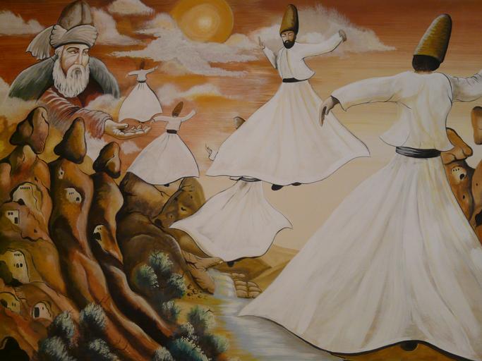 Keywords: dance dervishes rotate towels whirling dervish cappadocia turkey image painting