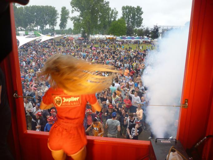 Keywords: dancer festival woman dancing spectators blonde
