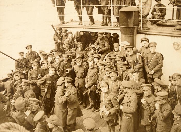 | Keywords: irish civil war irishcivilwar ship four courts fourcourts dancing eating smoking uniforms guns rifles apple accordion free state soldiers freestatesoldiers troops pro treaty protreaty w.d. hogan wdhogan hogan collection hogancollection 1922 1920s twenties bandolier 18-pounder 18pounder field gun fieldgun date established dateestablished limerick by beachcomber limerickbybeachcomber monday 7th august 20th century 20thcentury national library of ireland nationallibraryofireland people monochrome A lighter moment during the Irish Civil War captured by photographer W.D. Hogan, as Free State soldiers on board the S.S. Arvonia dance with each other to melodeon music... Date: Monday, 7 August 1922 (99% certain) NLI Ref.: HOG45 A lighter moment during the Irish Civil War captured by photographer W.D. Hogan, as Free State soldiers on board the S.S. Arvonia dance with each other to melodeon music... Date: Monday, 7 August 1922 (99% certain) NLI Ref.: HOG45 |