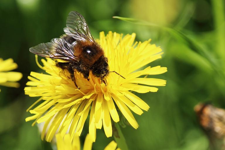 Keywords: dandelion bee pollen pollen pollination insect bee hummel close blossom bloom flower meadow sprinkle spring pointed flower yellow bloom spring flower