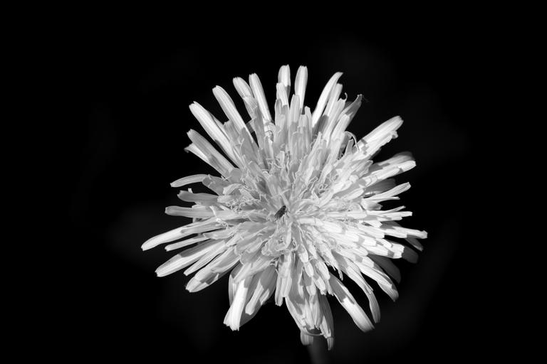 Keywords: dandelion blossom bloom flower black and white pointed flower