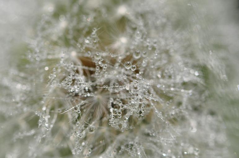 Keywords: dandelion drip wet raindrop dew white dewdrop morgentau drop of water droplets macro close