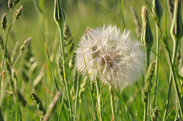 Keywords: dandelion flower garden nature white egret dandelion plants flora field yellow stamen