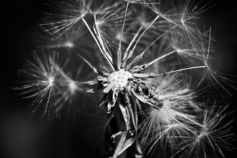 Keywords: dandelion flower spring close composites pointed flower faded meadow seeds blossom bloom plant macro dandelion seeds garden nature mood black and white black white