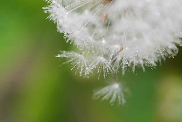 Keywords: dandelion fluff spring green white natural drop of water crystal clear grass
